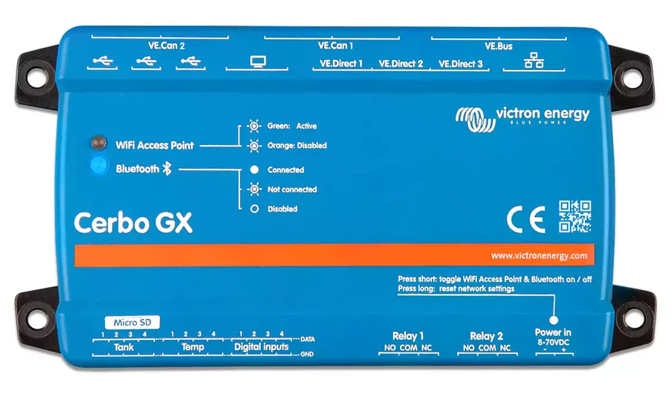 There was also the addition of 2 Victron Multiplus 24/3000/70 120 inverters set up to provide split phase power. These connect to each other and then to the Cerbo via VE.Bus rather than with the MK3 VE.Bus to USB adapter I used with the Pi.