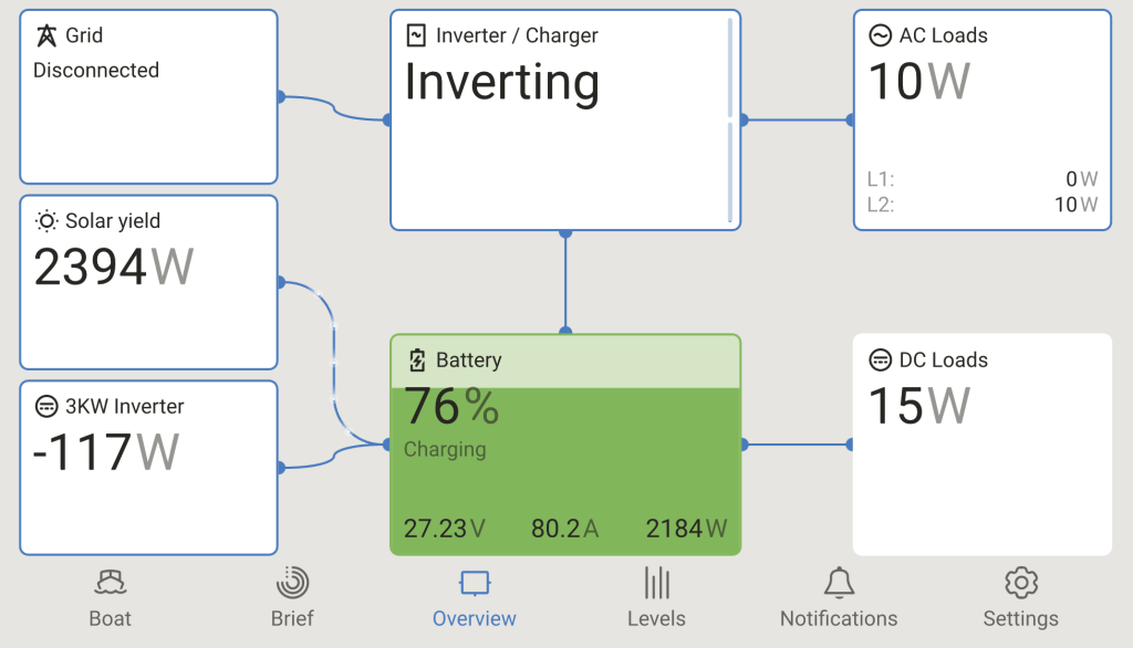 I have also added 2 320Ah batteries and upgraded a number of BMSes. The system now has 4 JK Inverter BMSes feeding into one of the Cerbo CAN ports. The other 3 batteries have the smaller JK BMSes coming into the Cerbo via USB with dbus-serialbattery. For some reason I’ve had a bit of an issue with these devices disappearing. I’m running them through an isolated hub so I’m not sure what the issue is there. Will have to look into this again at some point.